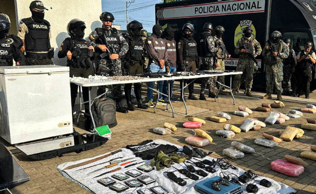 Guayaquil (Guayas), 27 de marzo de 2024.- Tres personas fueron procesadas por la Fiscalía por presunto tráfico de sustancias sujetas a fiscalización. Ellos tenían en su poder 48,3 kilos de marihuana, guardados en un congelador, al interior de su domicilio. Ellos forman parte de los diecisiete aprehendidos la mañana del 26 de marzo en el sector de Socio Vivienda, al norte de Guayaquil.