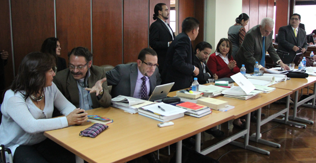 Quito, 12 de marzo del 2014.- El caso ‘Cajas, Vaca, Jarrín’ no tiene vicios de procedimiento y procedibilidad, determinó la jueza ponente, Lucy Blacio, en la audiencia preparatoria de juicio y sustentación de dictamen que se inició este 12 de marzo.
