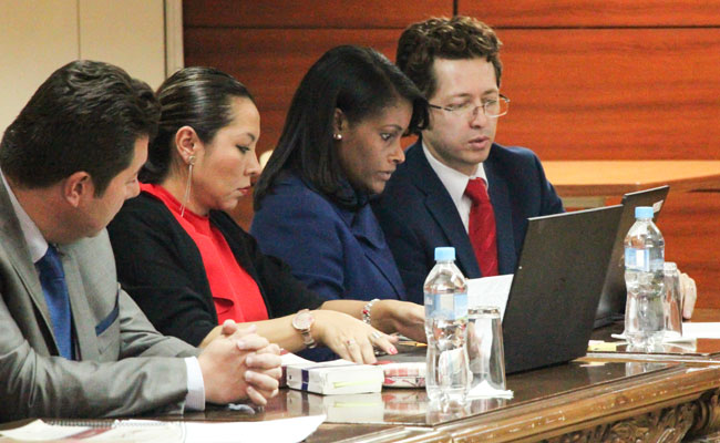 Según la Fiscalía, entre los años 2012 y 2016, Alexis M. se desempeñó como secretario jurídico de la Presidencia y María de los Ángeles D. como ministra de Transporte y Obras Públicas, por lo que, abusando de sus cargos públicos –a través de Pamela M.– exigían dinero a personas jurídicas, como la empresa brasileña Odebrecht, para obtener contratos futuros con el Estado y para su retorno al país.