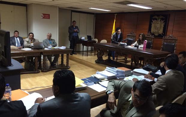Quito, 23 de octubre del 2015.- Luego de 13 horas de audiencia, la jueza nacional Sylvia Sánchez decidió llamar a juicio a la asambleísta María G. y a Miguel S., Walter T. y Santiago P., por su presunta participación en el delito de cohecho.
