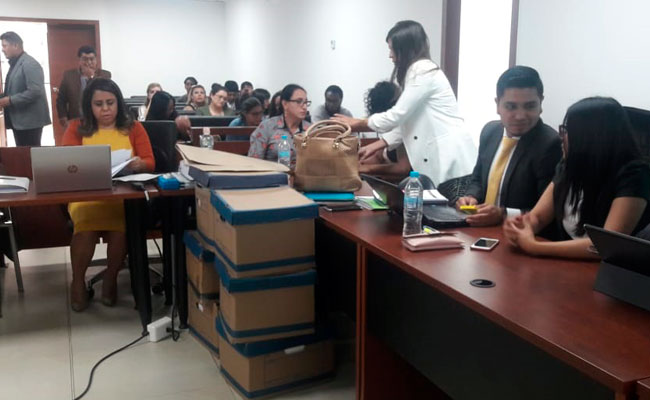 Quito, 04 de julio de 2019.- Luego que la Fiscalía General del Estado y la acusación particular terminaran con la presentación de sus pruebas, el Tribunal suspendió la audiencia de juicio en contra de Jonathan C., presunto responsable del delito de secuestro extorsivo con resultado de muerte. La reinstalación fue convocada para mañana, a las 08:30, para que la defensa inicie con la práctica de sus medios probatorios.