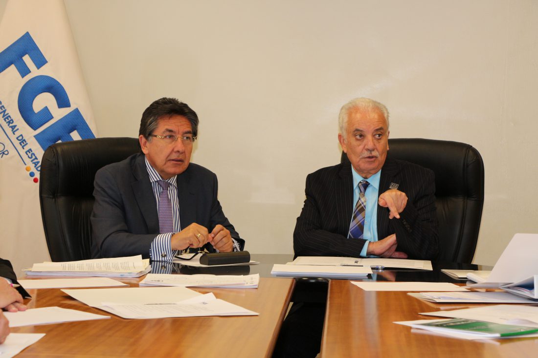 Los fiscales Generales de Colombia y de Ecuador, Néstor Martínez y Galo Chiriboga Zambrano, se reunieron este jueves 4 de mayo en Quito.