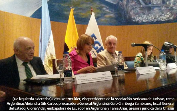Buenos Aires, 27 de abril del 2015.- Como una opción de integración y de lucha contra el crimen organizado es concebida la propuesta de Galo Chiriboga Zambrano, fiscal General de Ecuador, de crear una Corte Penal Suramericana. Ese criterio ganó espacio durante el primer día de debate jurídico en la Universidad de Buenos Aires (UBA), este lunes 27 de abril.