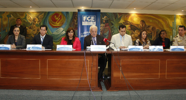 Galo Chiriboga Zambrano, fiscal General del Estado, junto a los representantes de varias instituciones, informaron sobre el caso ‘Atardecer’.