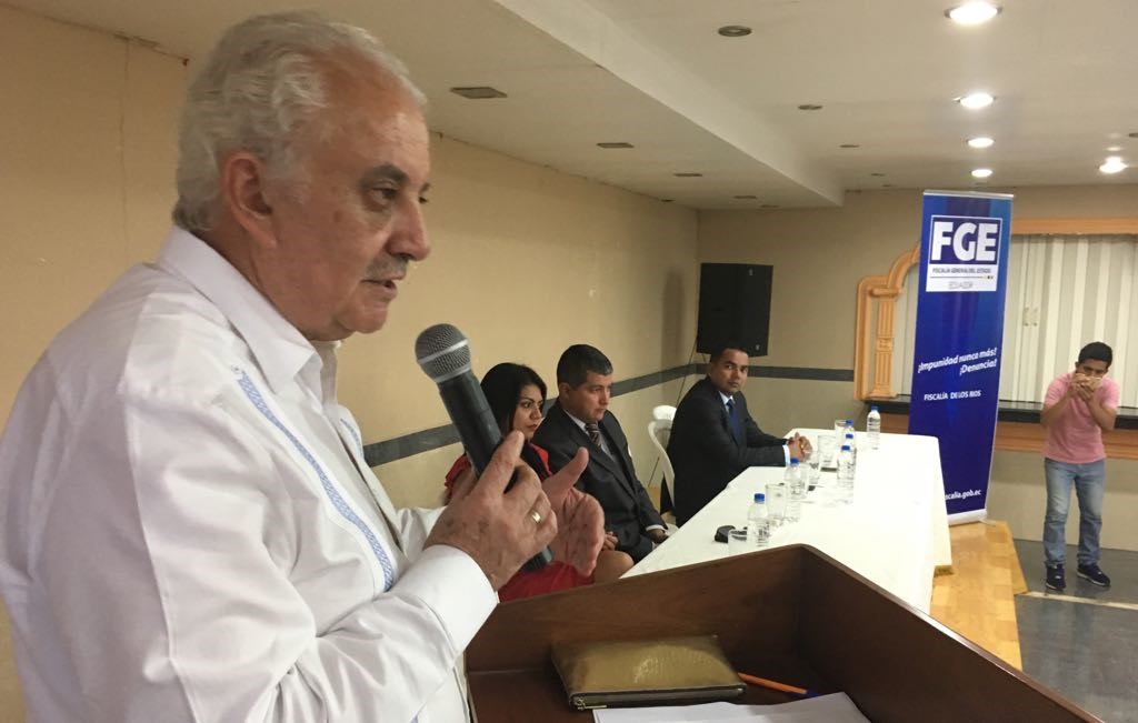 El fiscal General del Estado, Galo Chiriboga Zambrano, durante su intervención en la entrega de la Fiscalía de Montalvo.
