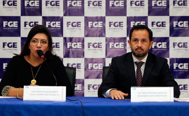 Quito, 06 de marzo de 2019.- En rueda de prensa realizada esta mañana, la Fiscal General del Estado (e), Dra. Ruth Palacios Brito, y el Secretario Anticorrupción, Dr. Iván Granda Molina, informaron las acciones realizadas en Brasil, en donde se lograron acuerdos con la Procuraduría General de ese país, en el caso Odebrecht.