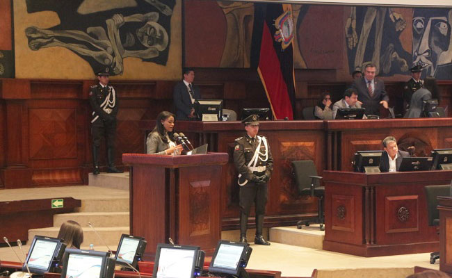 Quito (Pichincha), 28 de enero de 2020.- Ante el Pleno de la Asamblea Nacional, la fiscal general del Estado, Diana Salazar Méndez, presentó su informe de labores correspondiente al periodo comprendido entre el 8 de abril (fecha de su posesión) hasta el 31 de diciembre de 2019. En su alocución, destacó el compromiso institucional de luchar contra la corrupción y la impunidad, además de desarrollar los ejes de su gestión y las principales líneas de investigación que guían el trabajo de Fiscalía.