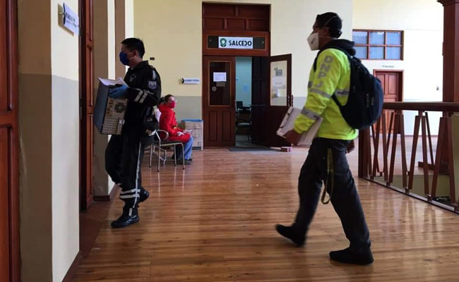 Salcedo (Cotopaxi), 09 de junio de 2020.- Esta mañana, la Fiscalía Provincial de Cotopaxi, en coordinación con Criminalística y la Policía Judicial, allanaron las oficinas del Municipio del cantón Salcedo, con el objetivo de recabar indicios sobre una presunta adquisición de insumos con sobreprecio, en el marco de la emergencia sanitaria.