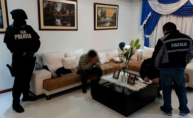 Cuenca, 01 de noviembre de 2017.- Luego de siete meses de investigación, la Fiscalía de Azuay con la participación de 10 fiscales lograron la detención de 11 personas que integraban una red de tráfico ilegal de migrantes. El operativo denominado “Odisea 5” fue ejecutado con el apoyo del personal de la Unidad Contra la Trata de Personas y Tráfico de Migrantes de la Policía Nacional. Fueron allanadas 12 viviendas, oficinas y una agencia de viajes en Quito, Cuenca, La Libertad, Azogues y Cañar.