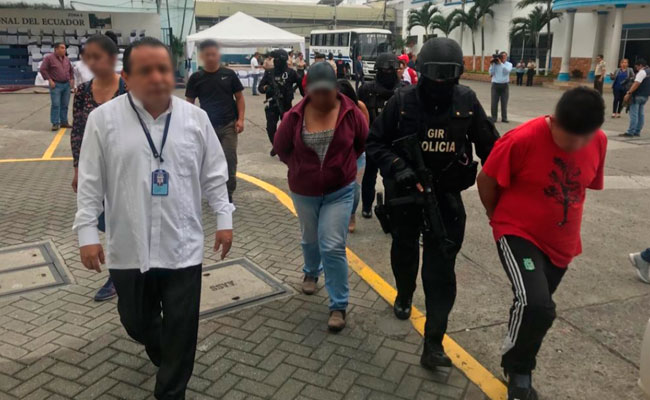 Guayaquil, 11 de julio del 2019.- En un operativo liderado por la Fiscalía del Guayas y la Unidad Antisecuestro y Extorsión (Unase) de la Policía Nacional, en las provincias de Guayas, Pichincha y Los Ríos, se desarticuló una presunta banda delictiva dedicada a la extorsión, que operaba desde al interior del Centro de Detención Provisional (CDP) de El Inca, en el norte de Quito.