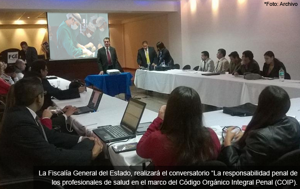 Guayaquil, 12 de junio del 2015.- El próximo lunes 15 de junio, la Fiscalía General del Estado, a través de la Escuela de Fiscales, realizará el conversatorio ‘La responsabilidad penal de los profesionales de salud en el marco del Código Orgánico Integral Penal (COIP)’.