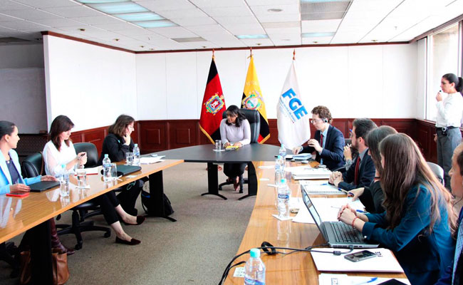 Quito, 05 de diciembre de 2019.- La fiscal general del Estado, Diana Salazar Méndez, acompañada de otros funcionarios de la Institución, se reunió con la relatora especial de la ONU sobre la violencia contra la mujer, sus causas y consecuencias, Dubravka Šimonović, a quien presentó las acciones realizadas por la Entidad en esta temática, en el ámbito de sus competencias constitucionales y legales.