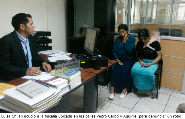 Hasta allí acudió Luisa Chilán para denunciar un robo. Con golpes y amenazas de muerte, fue despojada de sus pertenencias, luego de salir de su negocio de comidas ubicado en el centro de Guayaquil.