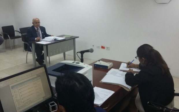 En la audiencia de juzgamiento por caso de abuso sexual, el fiscal Rómulo Sevilla (izq.) solicitó al Tribunal Décimo de Garantías Penales del Guayas, la pena de 10 años de pena privativa de libertad contra Pedro S.