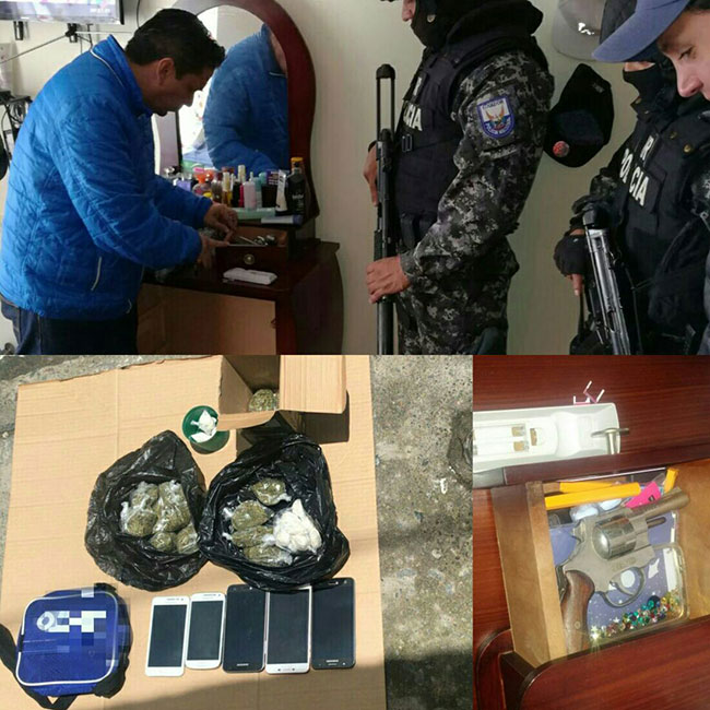 En este operativo, desarrollado la mañana del sábado 21 de octubre, se realizaron cuatro allanamientos en Cuenca, en los sectores: Sayausí, Baños, El Vado y Av. del Chofer. Como evidencias se incautaron celulares, joyas, prendas de vestir, dinero, armas y droga.