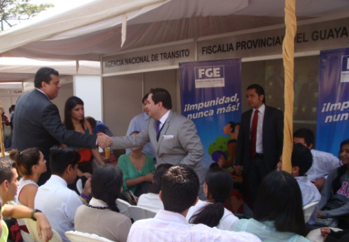 Guayaquil.- En la Tercera Feria Laboral organizada por la Universidad Católica de Santiago de Guayaquil, estuvo presente el stand de la Fiscalía Provincial del Guayas, donde se impartió información de la misión, visión y valores institucionales a los estudiantes y egresados de este centro de educación superior.