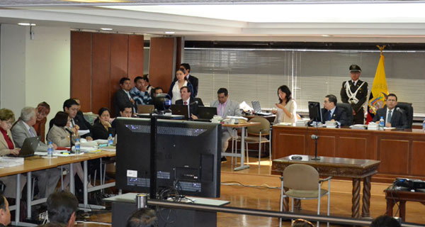 17 de diciembre del 2012.- El Tribunal de Garantías Penales de la Corte Nacional de Justicia instaló la audiencia de juicio con todas las partes procesales presentes. La audiencia se pospuso en dos ocasiones por ausencia de testigos y procesados.