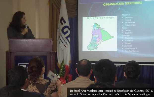 Macas, 21 de febrero del 2014.- La atención prestada a la ciudadanía en los Servicios de Atención Integral (SAI), en el Sistema de Protección a Víctimas y Testigos y en la Cámara de Gesell fueron los temas destacado en el informe de Rendición de Cuentas de la Fiscalía de Morona Santiago.