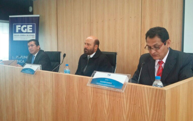(De izq. a der.) Wilson Merino, Director de Gestión Procesal de la Fiscalía General del Estado, José Montalvo, subdecano de la Facultad de Jurisprudencia de la Universidad de Cuenca y Teodoro Barros, director de la Escuela de Fiscales.