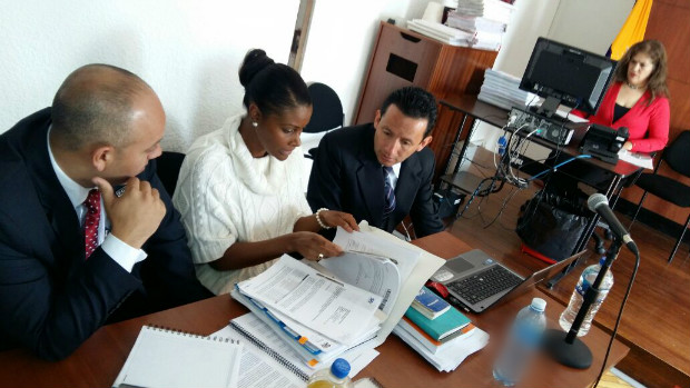 Quito, 24 de octubre del 2016.- Un total de 43 pruebas documentales fueron expuestas por la Fiscalía en el séptimo día de la audiencia de juzgamiento seguida en contra de Luis Ch., Pedro V. y Hugo M., exfuncionarios de la Federación Ecuatoriana de Fútbol (FEF), procesados por el presunto delito de lavado de activos.