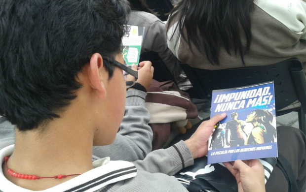 Jóvenes se informan sobre Derechos Humanos con material elaborado por la Fiscalía.