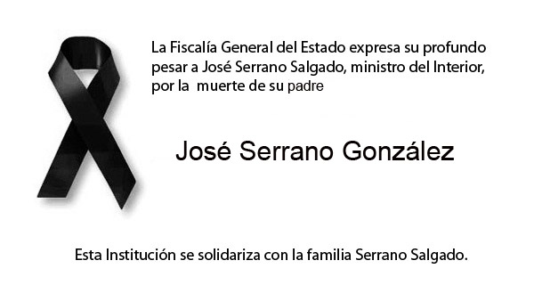 La Fiscalía General del Estado expresa su profundo pesar a José Serrano Salgado, ministro del Interior, por la muerte de su padre: José Serrano González.