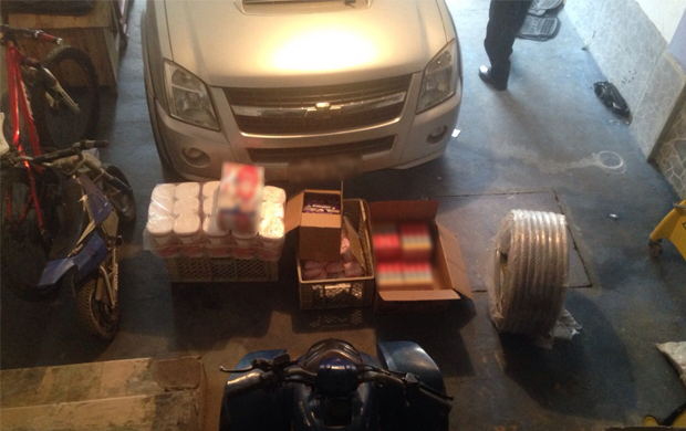 Se realizaron 2 allanamientos simultáneos en los sectores La Colmena y Quitumbe, del sur de Quito. Allí se incautaron 3 vehículos, equipo de limpieza, plasmas, relojes, joyas y artefactos electrónicos que los ahora detenidos no pudieron justificar su origen.