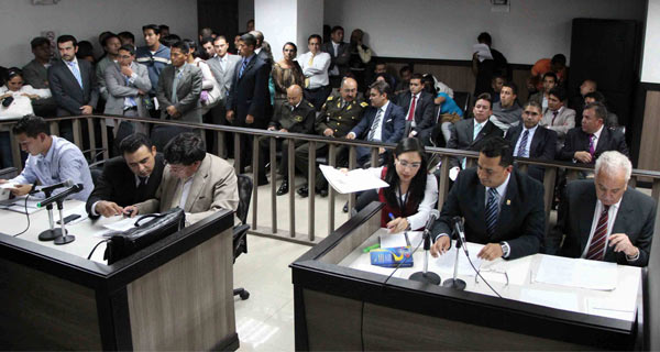 Durante la audiencia de formulación de cargos a la que asistieron el fiscal General del Estado, Galo Chiriboga Zambrano, y el ministro del Interior, José Serrano Salgado, el fiscal del caso, Galeano Balcázar, presentó los elementos de convicción que involucrarían a los dos ciudadanos en el delito de asesinato.