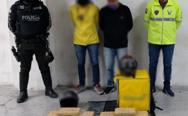 En cuanto a Juan Daniel P. P., venezolano de 22 años, y Carlos Antonio B., colombiano de 32, procesados penalmente por tráfico de drogas en alta escala, también transportaban marihuana en la cesta de los encargos a domicilio, con la etiqueta de la misma empresa por las calles de Carapungo.