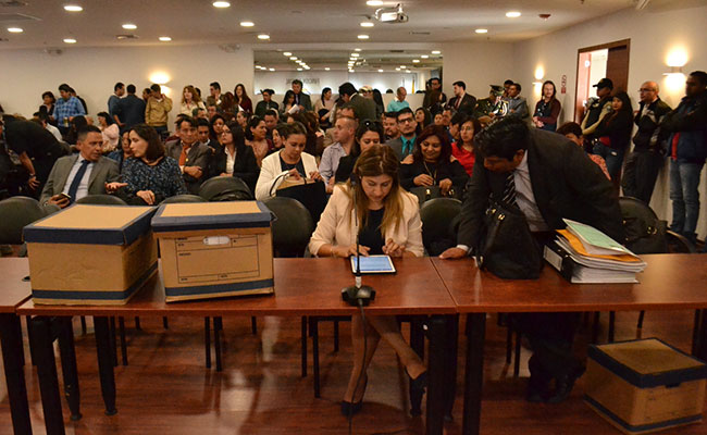 Quito, 10 de enero de 2018.- Con la presencia de más de 80 testigos y la asistencia de aproximadamente 200 personas a la sala de audiencias del piso 11 del Complejo Judicial Norte, en Quito, inició la audiencia de juzgamiento en el caso de la clínica ‘La Primavera’.