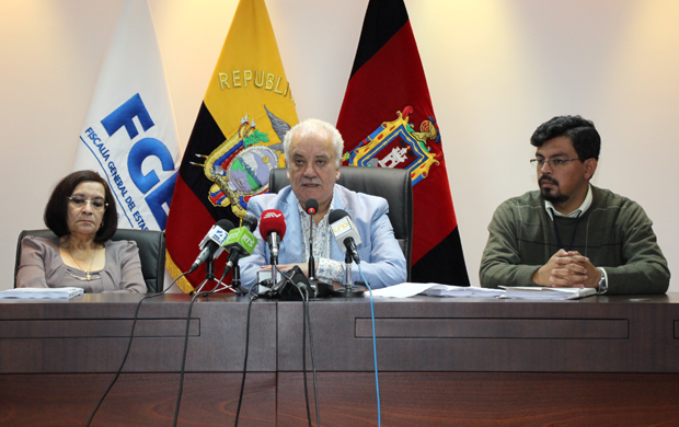 Quito, 10 de abril del 2015.- “La Fiscalía se siente satisfecha con los resultados alcanzados, que son muy importantes para la justicia ecuatoriana”, expresó Galo Chiriboga Zambrano, fiscal General del Estado, al referirse a la sentencia en el caso ‘Cofiec’.