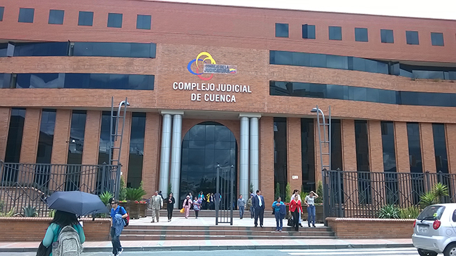 Esta diligencia inició la mañana del martes 18 de abril en el Complejo Judicial de Cuenca, ante los jueces Guido Naranjo (ponente), César Pesantez y Cayo Cabrera.