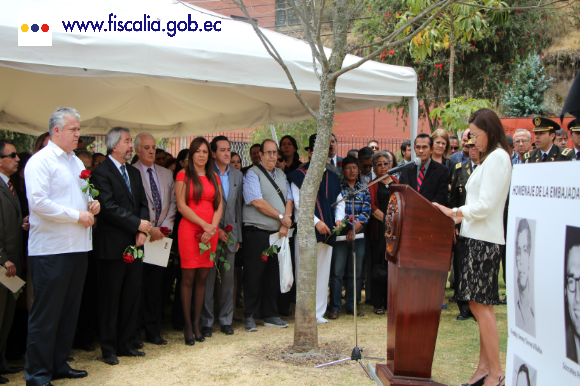En la ceremonia participaron el embajador de Chile en el Ecuador, Gabriel Ascencio y varios familiares de las víctimas de la dictadura militar. El fiscal General del Estado, Galo Chiriboga Zambrano manifestó que Sócrates, Felipe, Freddy y José, los ciudadanos chilenos desaparecidos, ya tienen un espacio en la plaza chilena de la ciudad de Quito, esto a través de una placa recordatoria que evidencia que ellos fueron víctimas de violación a los derechos humanos.