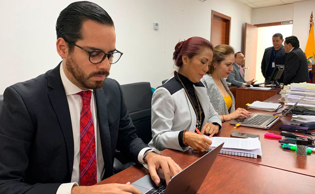 Quito (Pichincha), 29 de noviembre de 2019.- En el décimo día de audiencia de juzgamiento, por el presunto delito de lavado de activos en contra de seis ciudadanos, entre ellos el empresario Édgar A. y las personas jurídicas Diacelec S.A. y Conacero S.A., la defensa de los procesados inició con la presentación de la prueba de descargo.