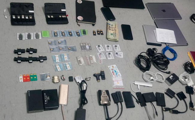El Fiscal del caso detalló que en las maletas que llevaba el ciudadano, cuando pretendía viajar a Japón y en el allanamiento realizado a su casa, se halló gran cantidad de computadoras portátiles, Ipads, Ipods, cables USB, dispositivos de almacenamiento de datos USB, teléfonos celulares, adaptadores, conectores de diferentes puertos, tarjetas de crédito, entre otros.