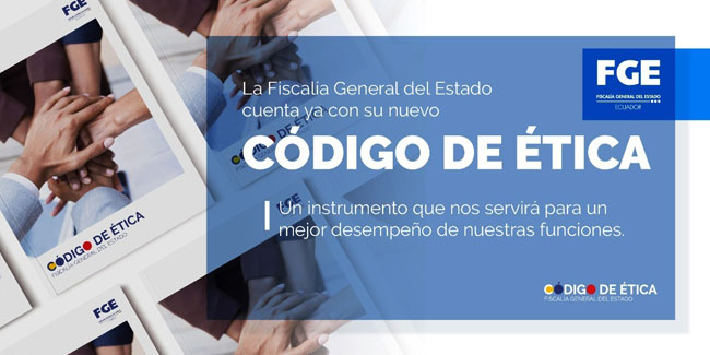 Quito (Pichincha), 31 de julio de 2020.- La Fiscalía General del Estado (FGE), luego de un proceso de trabajo multidisciplinario, emite su Código de Ética, para conocimiento y aplicación de todos los funcionarios que integran la Institución. El documento presenta una serie de directrices y recomendaciones que tienen como objetivo fomentar la buena práctica profesional en beneficio de la ciudadanía.