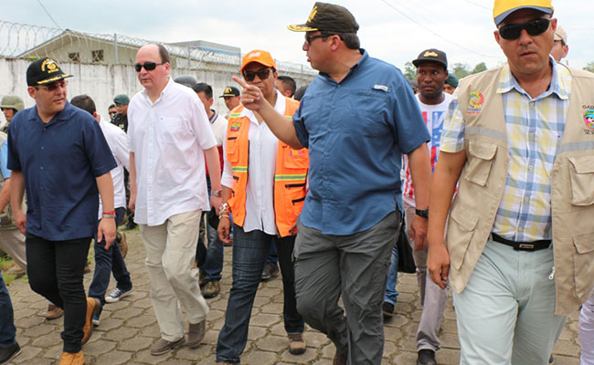 San Lorenzo, 28 de enero de 2018.- El Fiscal General, Doctor Carlos Baca Mancheno, junto con los ministros del Interior, César Navas Vera; de Defensa Patricio Zambrano; la secretaria de Gestión de Riesgos, Alexandra Ocles; entre otras autoridades de Estado, recorrieron las zonas afectadas por el atentado terrorista suscitado en el cantón San Lorenzo la madrugada del pasado sábado.
