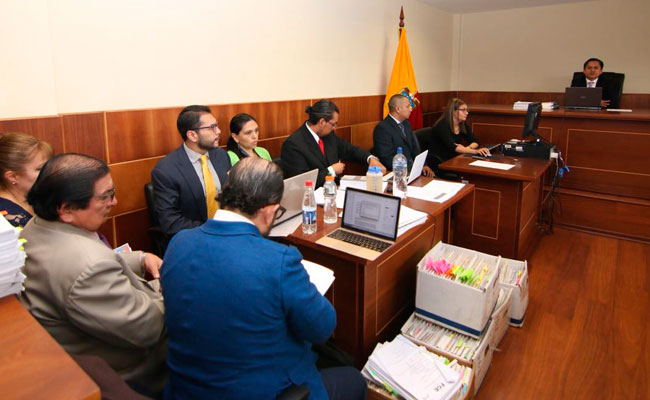Quito, 27 de abril de 2018.- El jueves 26 de abril de 2018, en la Casa de Justicia de Carcelén, se reinstaló la audiencia de evaluación y preparatoria de juicio en contra de Carlos L., Blanca F., José L., Jonathan R., Roberto E. y Mauro C. por su presunta participación en el delito de asesinato contra David Romo.