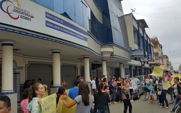 En las afueras de la Unidad Judicial de Pasaje, durante la audiencia del sábado 29 de octubre.