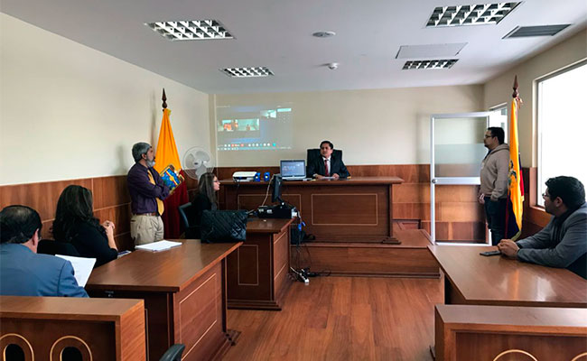 Quito, 14 de mayo de 2018.- Tras acoger los elementos de convicción presentados por la Fiscalía, el juez Telmo Molina dictó auto de llamamiento a juicio en contra de Carlos L., Blanca F., José L., Jonathan R., Roberto E. y Mauro C. por su presunta participación en el delito de asesinato contra David Romo.