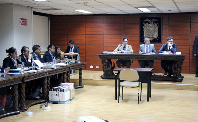 Quito, 09 de mayo de 2018.- En una audiencia que superó las 8 horas, las 21 pruebas presentadas por la Fiscalía, entre documentales y testimoniales, fueron acogidas en su totalidad por el Tribunal Penal de la Corte Nacional de Justicia (conformado por los magistrados Luis Enríquez, Marco Rodríguez y Miguel Jurado), quien sentenció a Carlos P. Y. como autor del delito de enriquecimiento ilícito y le impuso una pena privativa de libertad de 10 años.