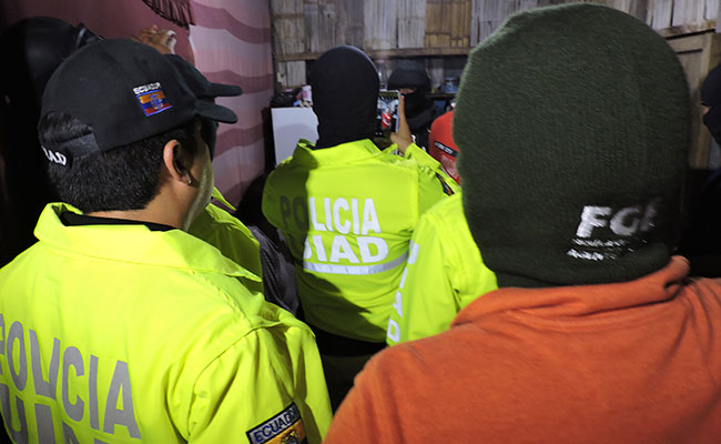 Los aprehendidos son: Luis C., Kelvin A., Bayron V., Bryam M., Johana A., Rosa S., Nathaly S., Washington M., Jorge M. y Jorge A. (colombiano), y presunto líder de la red, quien fue detenido en El Coca. Luis Cadena, Fiscal Especializado en Delincuencia Organizada transnacional e internacional (FEDOTI 2) de Portoviejo, se encuentra en espera la audiencia para formular cargos en contra de los detenidos.