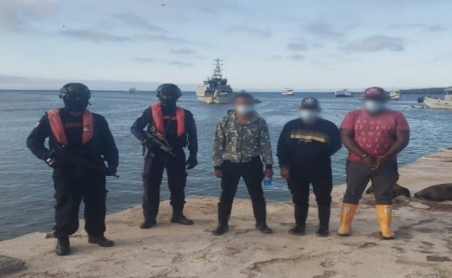San Cristóbal (Galápagos), 27 de diciembre de 2021.- La Fiscalía de Galápagos procesó esta mañana a tres personas, que fueron detenidas cuando transportaban más de media tonelada de cocaína, durante un operativo ejecutado por las Fuerzas Armadas a 163 millas náuticas al sur de San Cristóbal, en Galápagos.