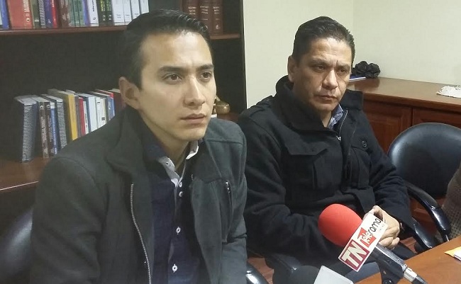 El fiscal Esteban Coronel (izq.) y el fiscal Provincial del Azuay, Adrián Rojas, informaron sobre el caso.