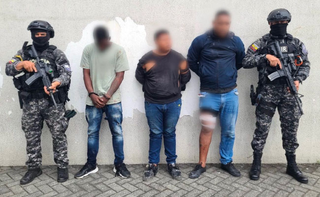 Guayaquil (Guayas), 31 de octubre de 2022.- Tres personas fueron procesadas por robo con resultado de muerte. Las víctimas son dos guardias de seguridad, que murieron tras el asalto a mano armada a un vehículo blindado que transportaba valores en la Zona Aérea de Carga del Aeropuerto Internacional José Joaquín de Olmedo, de Guayaquil.