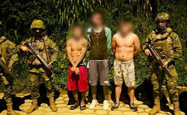 Los sospechosos fueron aprehendidos la madrugada del 28 de octubre de 2023, en una zona minera. Personal de las Fuerzas Armadas -que hacía patrullajes de rutina- los identificó camuflándose entre la maleza. Uno de ellos, Juan Gabriel A., llevaba una mochila que la arrojó a una alcantarilla.