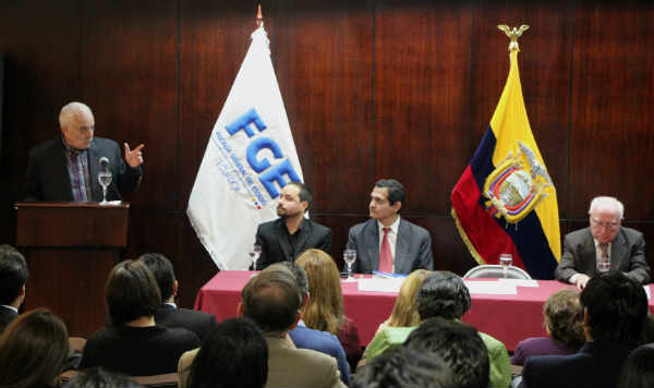 Galo Chiriboga Zambrano, fiscal General del Estado inauguró el Primer Simposio de Entomología Forense, evento organizado conjuntamente con la Pontificia Universidad Católica del Ecuador (PUCE). Jornada académica que contó con la presencia del rector de la Universidad, Manuel Corrales y más autoridades de las dos instituciones.