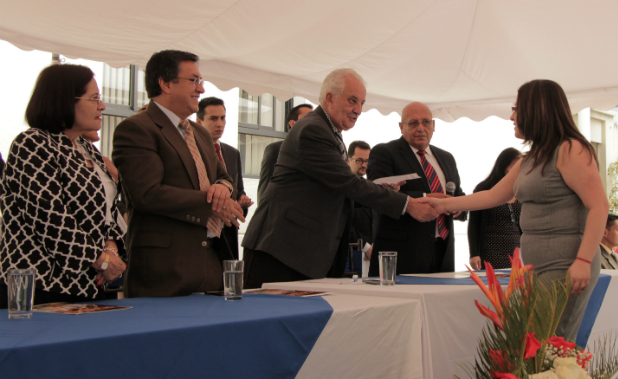 El fiscal General, Galo Chiriboga, entrega el nombramiento a una de las nuevas agentes fiscales.