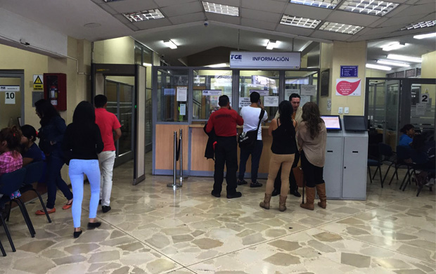 En la planta baja de la Fiscalía Provincial de Pichincha los usuarios son atendidos por el personal del Servicio de Atención Integal (SAI).