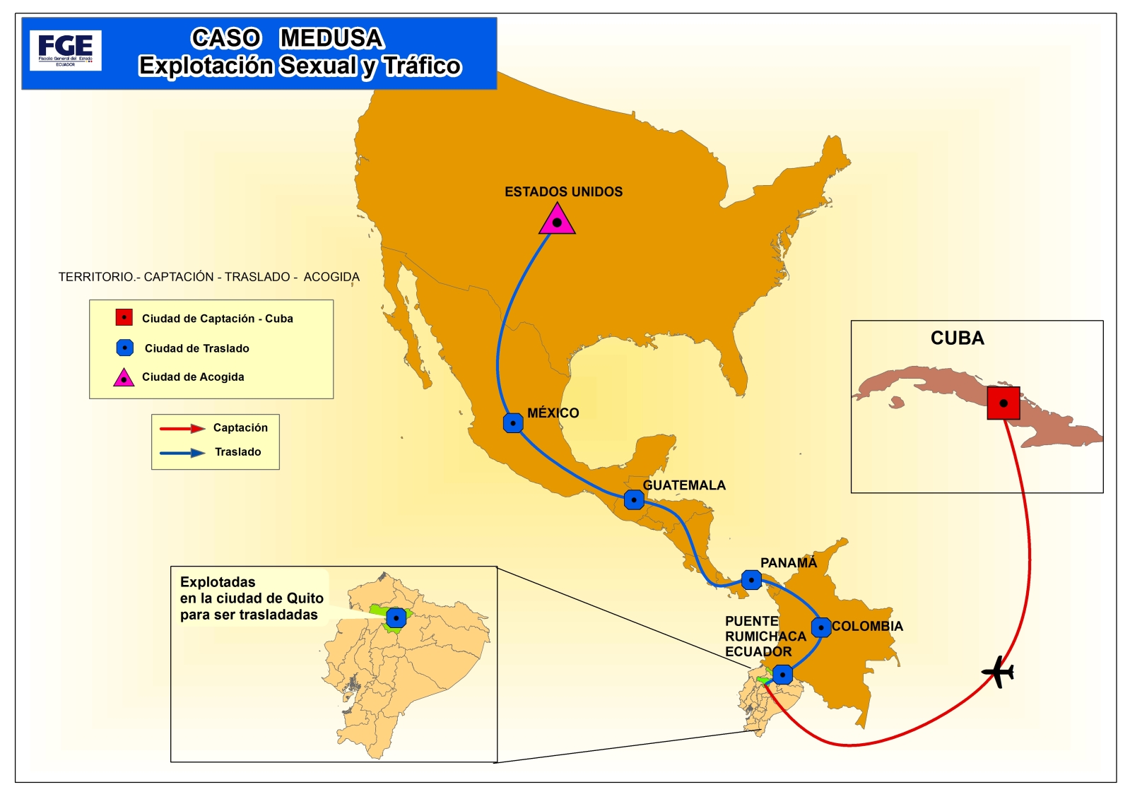 Según las investigaciones de la Fiscalía, este grupo tenía sus captadores al menos en tres provincias de Ecuador y se llevaban a las adolescentes mediante amenazas y seducción. Luego las trasladaban al exterior con documentos de identidad falsos, para hacerlas pasar por mayores de edad.